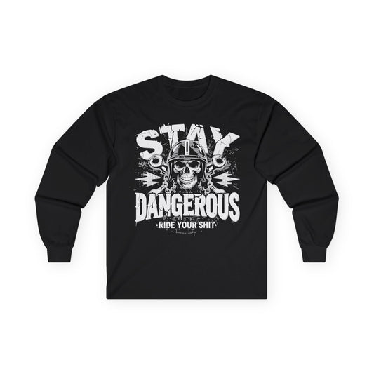 Stay Dangerous Long Sleeve Tee, Unisex Cotton Shirt, Gift for Bikers, Cool Graphic Tee, Love Yours Style